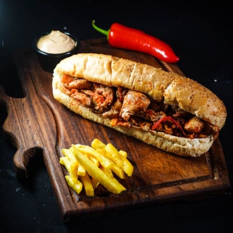 سندويش معجوقة دجاج دبل لحم على الفحم