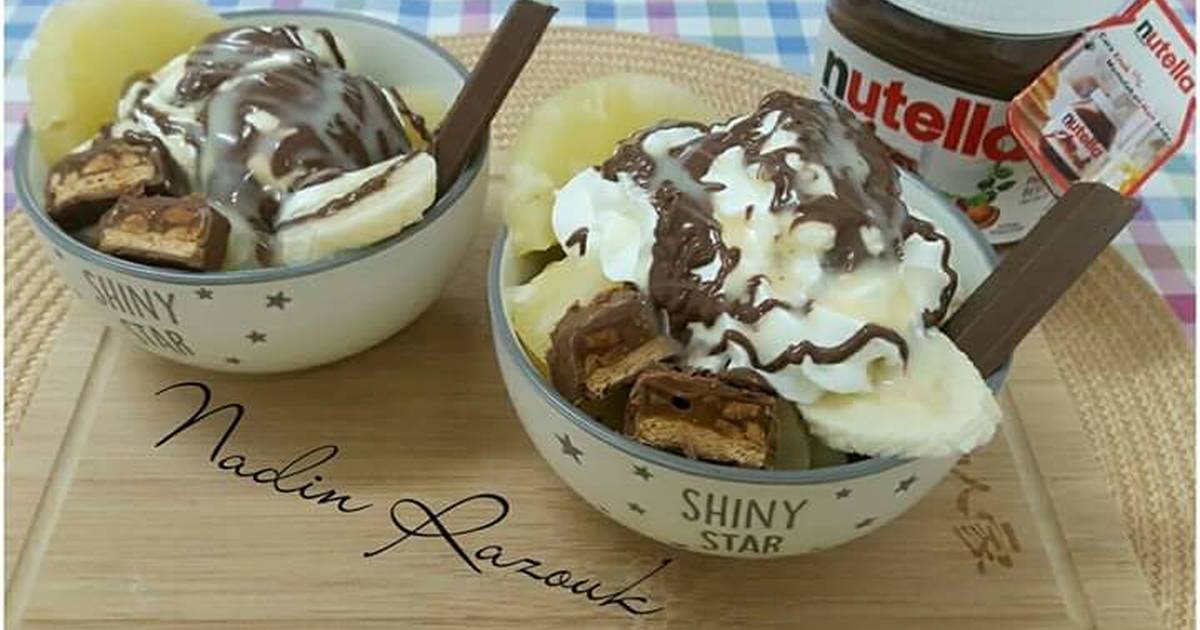 سلطة فواكة مع نوتيلا وقشطة